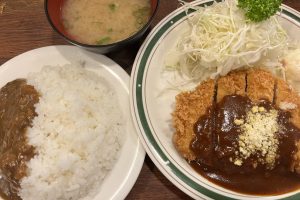 かき揚げ丼と肉丼のハーフですが、どちらも食べたかったのでとてもありがたいです。